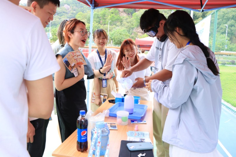 The safety month opening event added interactive carnival activities, which were divided into two parts: lab safety knowledge sharing and emergency rescue practice areas. The former one focused on safety management implemented by the campus, and was divided into six topics: lab safety, lab waste management, personal protection, chemical management, fire safety, energy saving, electricity safety, as well as disaster prevention and reduction.