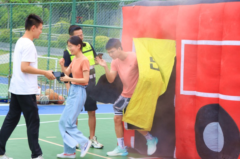 The "fire escape experience house" simulates the scene of fire through scene-setting and smoke. Before the drill, the trainer explained the precautions for the house. Then he guided participants to enter in an orderly manner to experience the process of self-help in a small, dark space, finding an evacuation route.